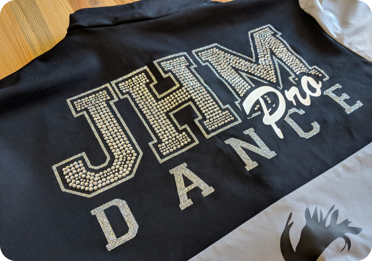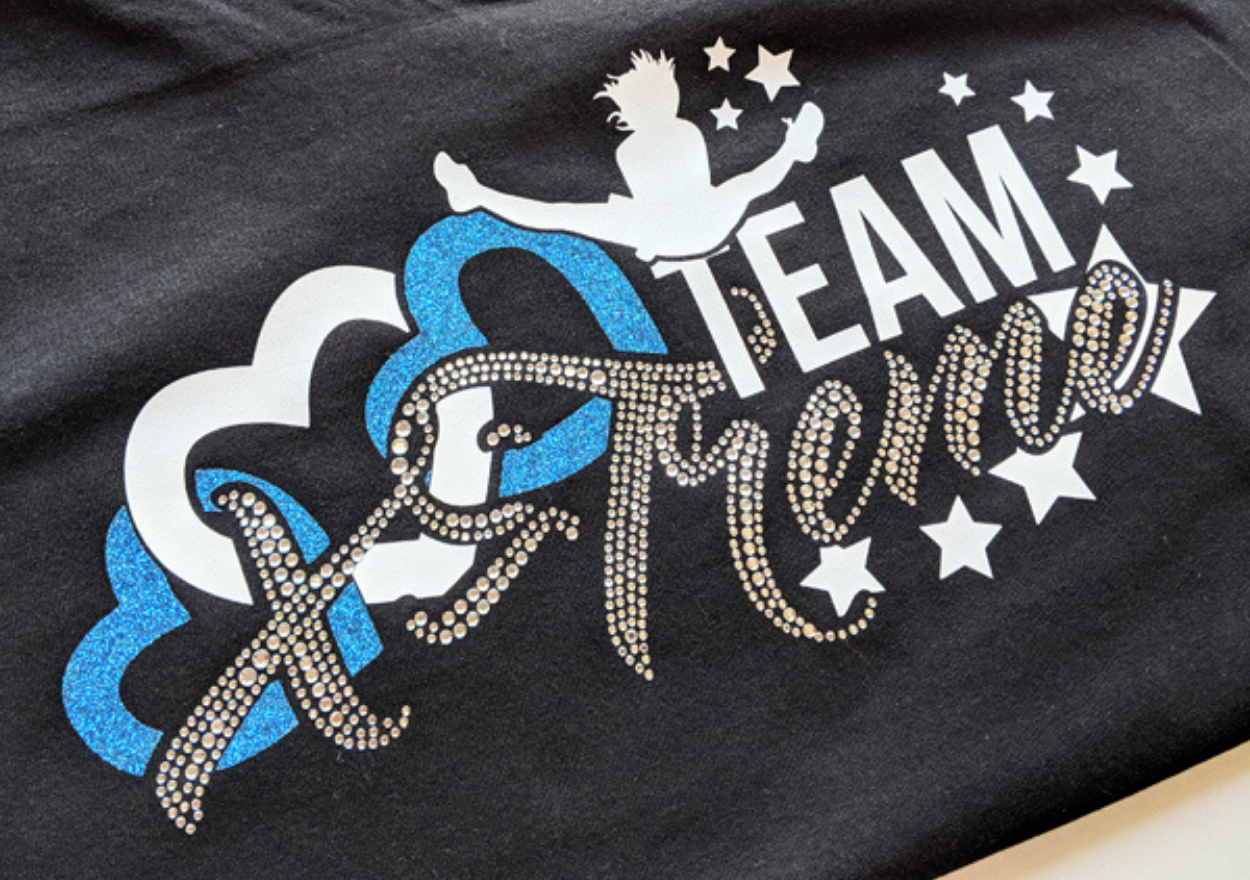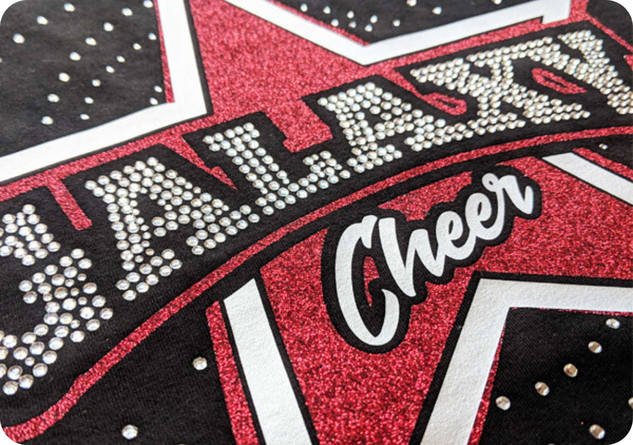 Prints That We Offer Include: Rhinestones, Glitter, Embroidery, Vinyl, Screen Print and Multicoloured Digital Print.